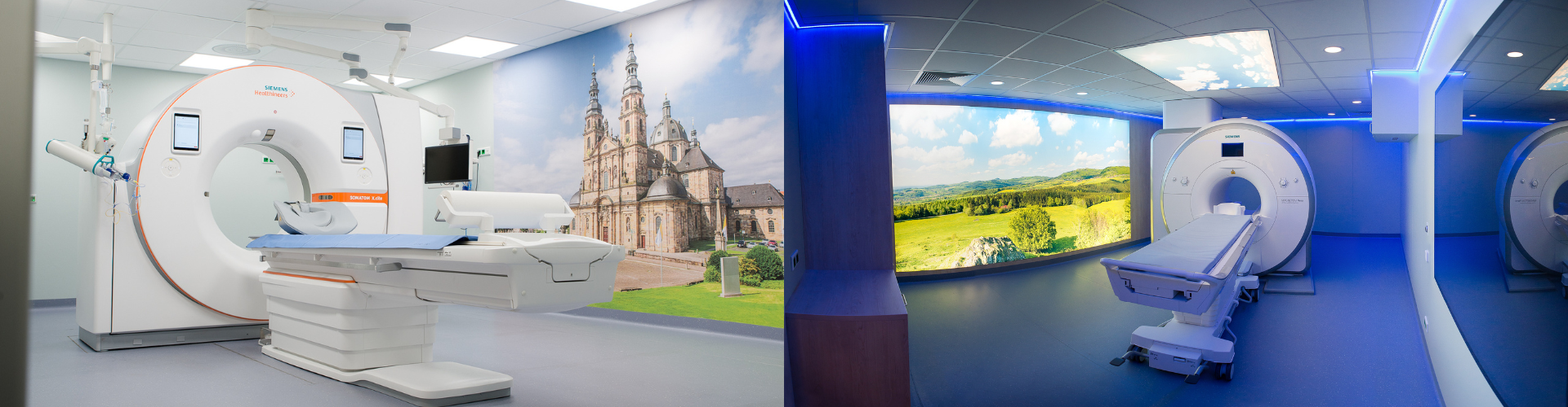 - Computertomographie (CT-Diagnostik, inkl. Herz-CT und Interventionelle Verfahren wie Biopsien, Drainage-Anlagen, Wirbelbruch-Stabilisierungen (Vertebroplastie) oder schmerztherapeutische Eingriffe (PRT/Facettenblockade))
