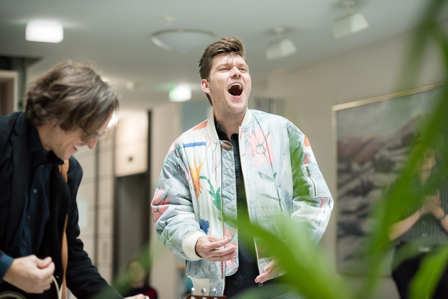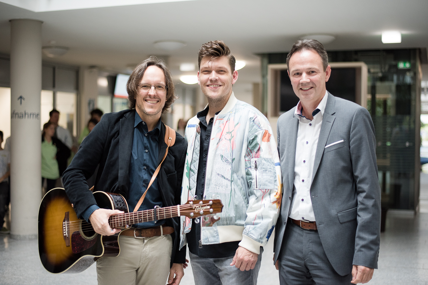 Im Foyer zwischen Mitarbeitenden, Patienten und Besuchern sangen Spotlight-Produzent Peter Scholz und Sänger sowie Musicalarsteller Dennis Henschel live Songs aus dem Musical „Robin Hood“.