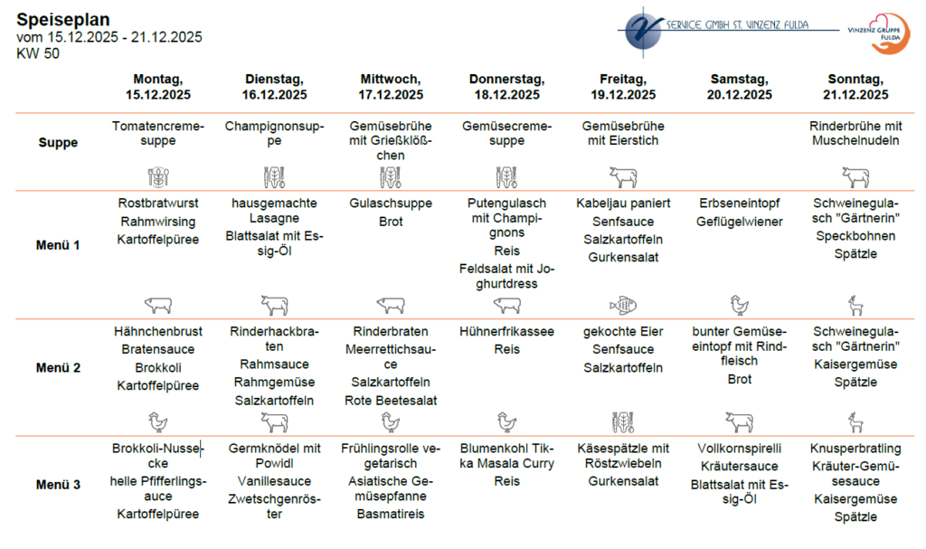 Wöchentlicher Speiseplan ab 15.Dezember 2025
