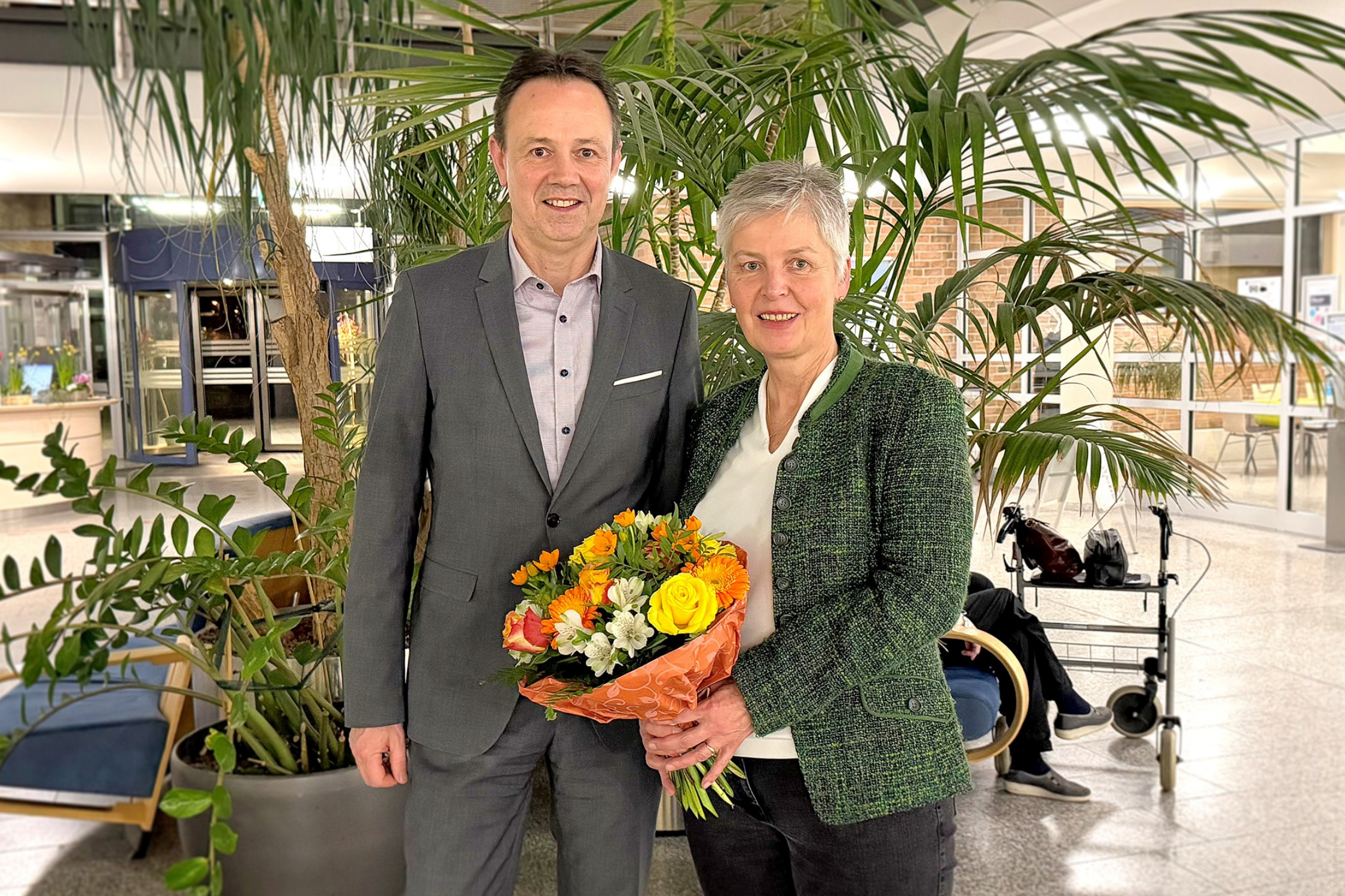 Foto (v.l.): Michael Sammet (Geschäftsführer Herz-Jesu-Krankenhaus Fulda) verabschiedet die katholische Krankenhausseelsorgerin Hannelore Dauzenroth in den Ruhestand.